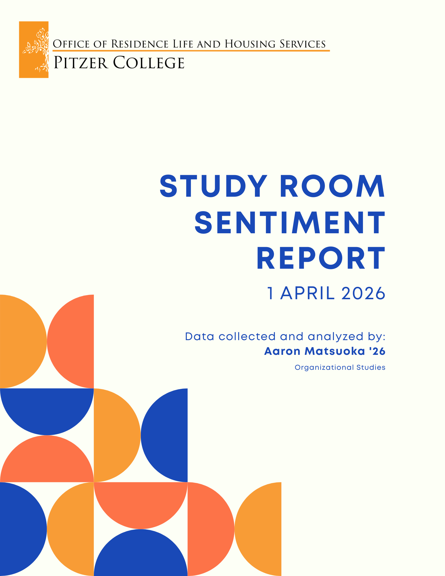 In my four years at Pitzer I have been exposed to many study spaces across the 5Cs. I have heard complaints about Pitzer study rooms, but I wanted to discover how people really used study rooms and if there was a desire to improve. This data has been collected as part of my senior thesis project in Organizational Studies to discover what Pitzer students actually want in their study spaces in order to make them more productive and successful students. This report will shine light on the needs of students within on-campus study spaces and how .
